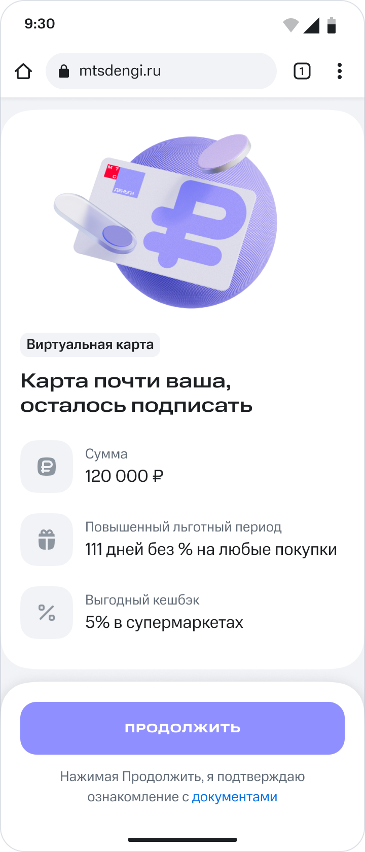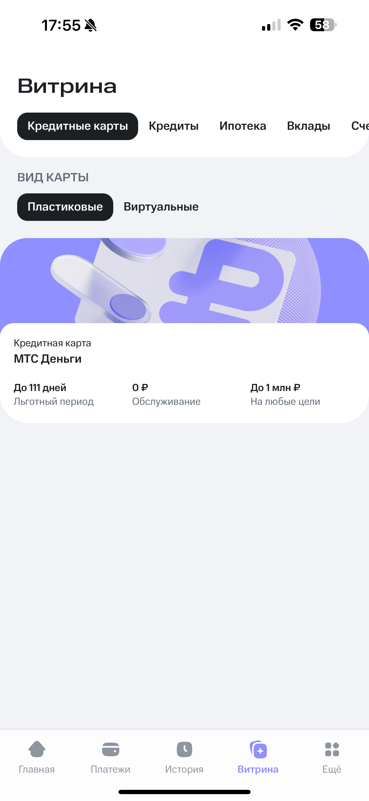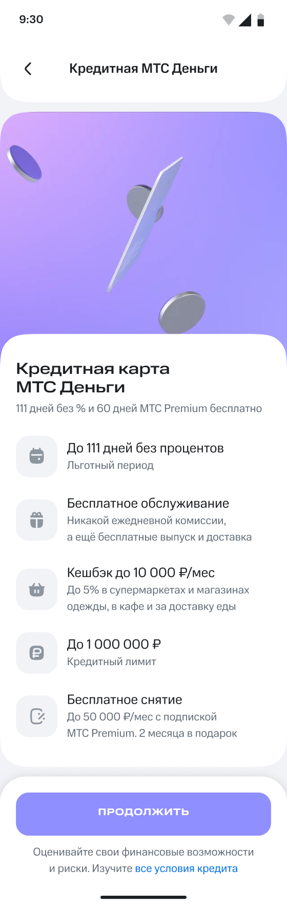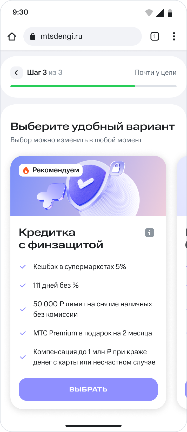 1. Редизайн экрана предложения кредитной карты в ЛК APP/WEB