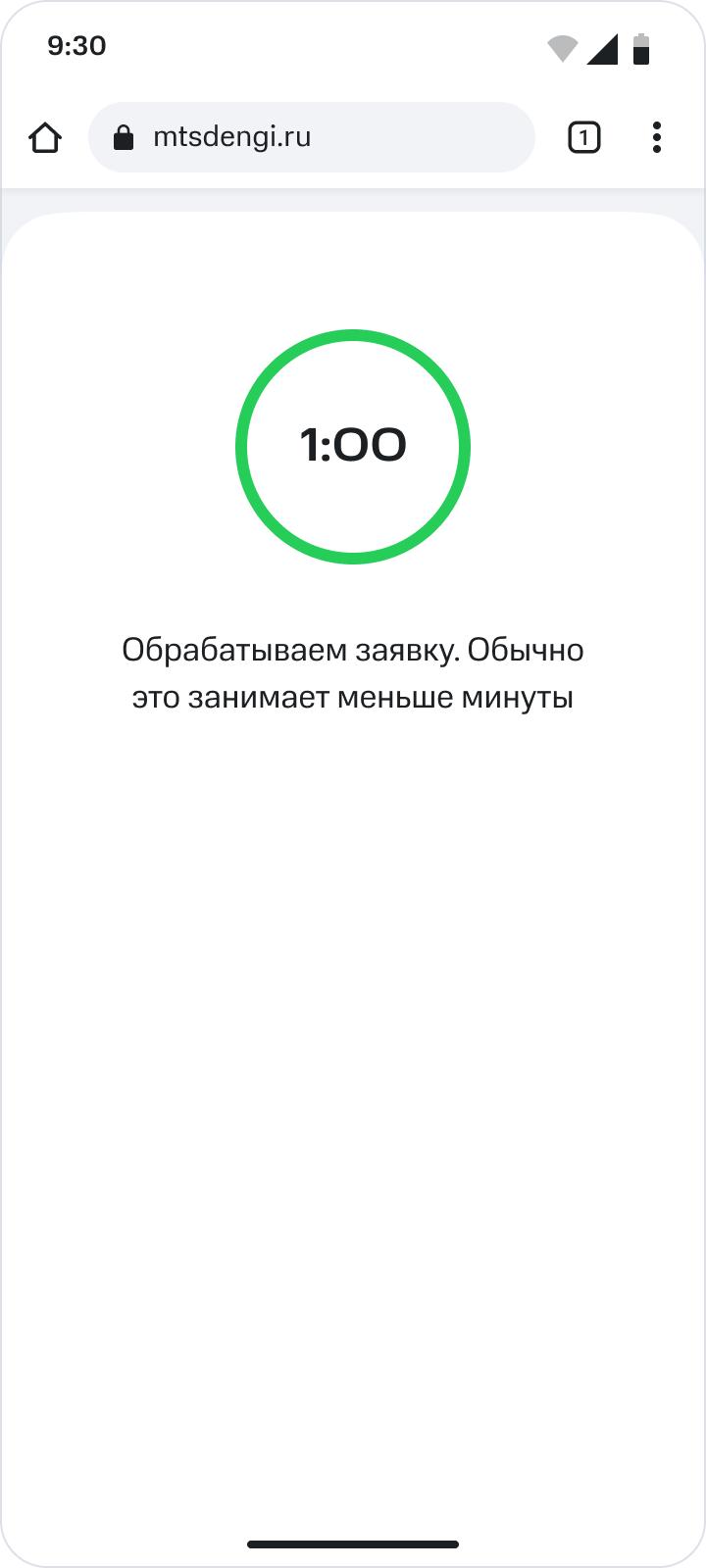 После прохождения всех шагов анкеты на кредитку, пользователи попадают на экран ожидания, на котором сейчас у нас таймер. Этот шаг нужен для того, чтобы провести ряд проверок и принять решение по заявке. Среднее время принятия решения — 1 минута 20 секунд. Есть гипотеза, что часть пользователей не дожидается и уходит из процесса. Мы хотим разработать игру, чтобы удержать таких пользователей на этом экране и повысить конверсию в подписание карты засчет увеличения потока.