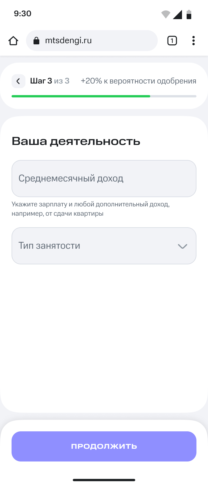 Новый экран мы переместили в конец анкеты, переработали по структуре, сделали два бандла (Кредитка с финзащитой и Кредитка без дополнений), в каждом бандле есть ”i”, по нажатию выезжает модалка с подробностями: что входит, сколько стоит, примерами расчёта стоимости и страховых случаев. В общем постарались максимально снизить когнитивную нагрузку на этом шаге и прозрачно донести ценность доп услуг, отработав проблемы, полученные из исследования. В результате конверсия в подключение выросла до 35%.