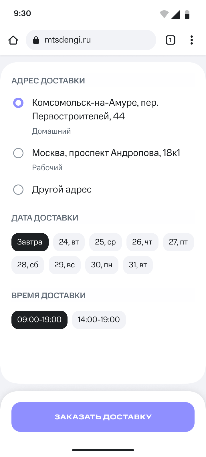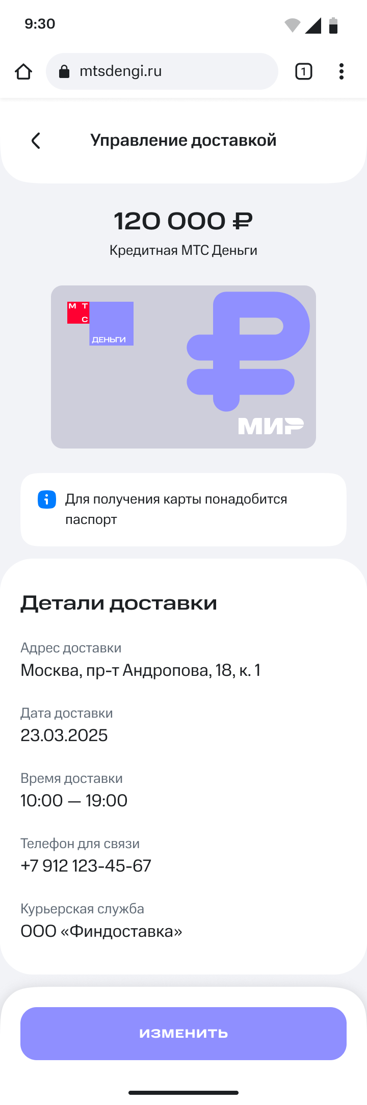 Виджет в ЛК у пользователей, которые заполнили заявку на карту, получили одобрение, выбрали доставку как способ получения. Этот виджет нужен для информирования пользователей + он даёт возможность изменить дату и время доставки.
