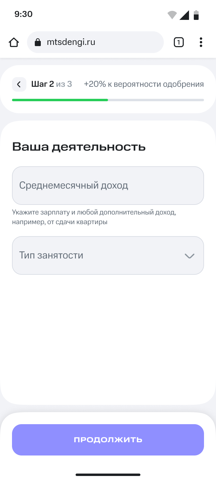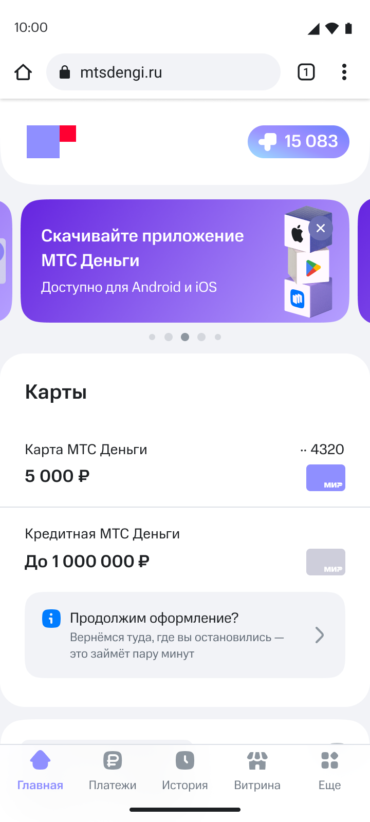 Виджет в ЛК у пользователей, которые начали заполнять заявку на КК, но ушли с какого-либо шага оформления. По нажатию на виджет, пользователь переходит на тот шаг заявки, с которого ушел