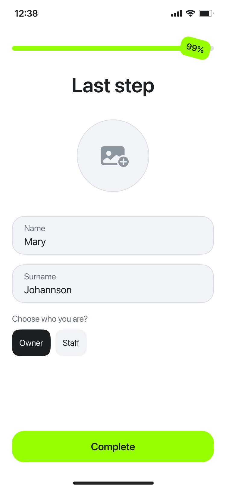 Онбординг&Регистрация. Цель — пройти регистрацию, поэтому инструкциями и рассказами про приложение здесь не заваливаем, только самым необходимым. Регистрация простая: через Apple iD, далее подтверждение кодом из письма, далее нужно проверить и поправить имя, фамилию, выбрать роль и по желанию, добавить аватар аккаунту.