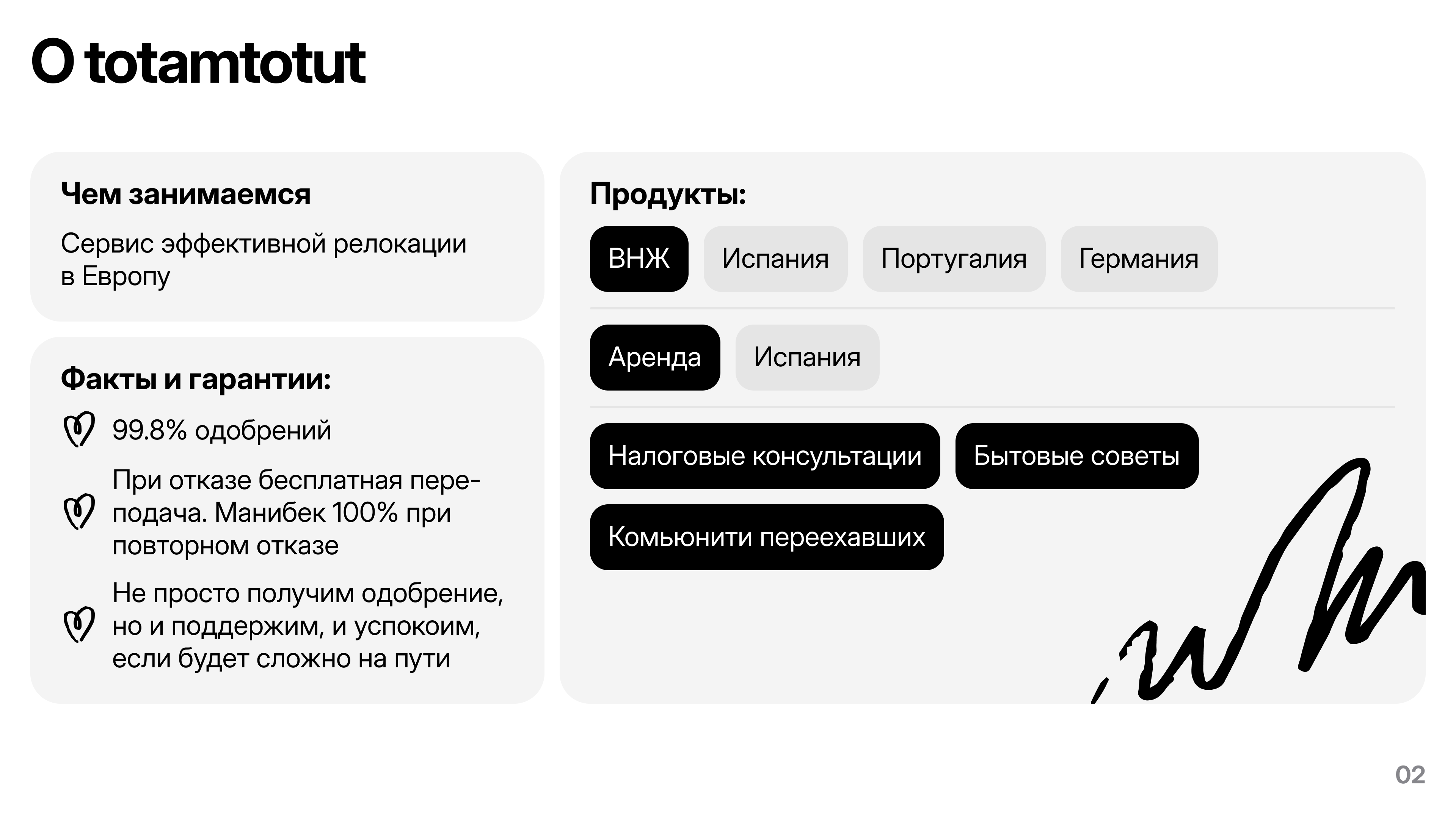 Totamtotut зарабатывает на услугах по релокации — юридическое сопровождение, консультации, подбор жилья, оформление документов. Цель компании — сделать процесс релокации простым, понятным и человечным, сохранив при этом экспертность.